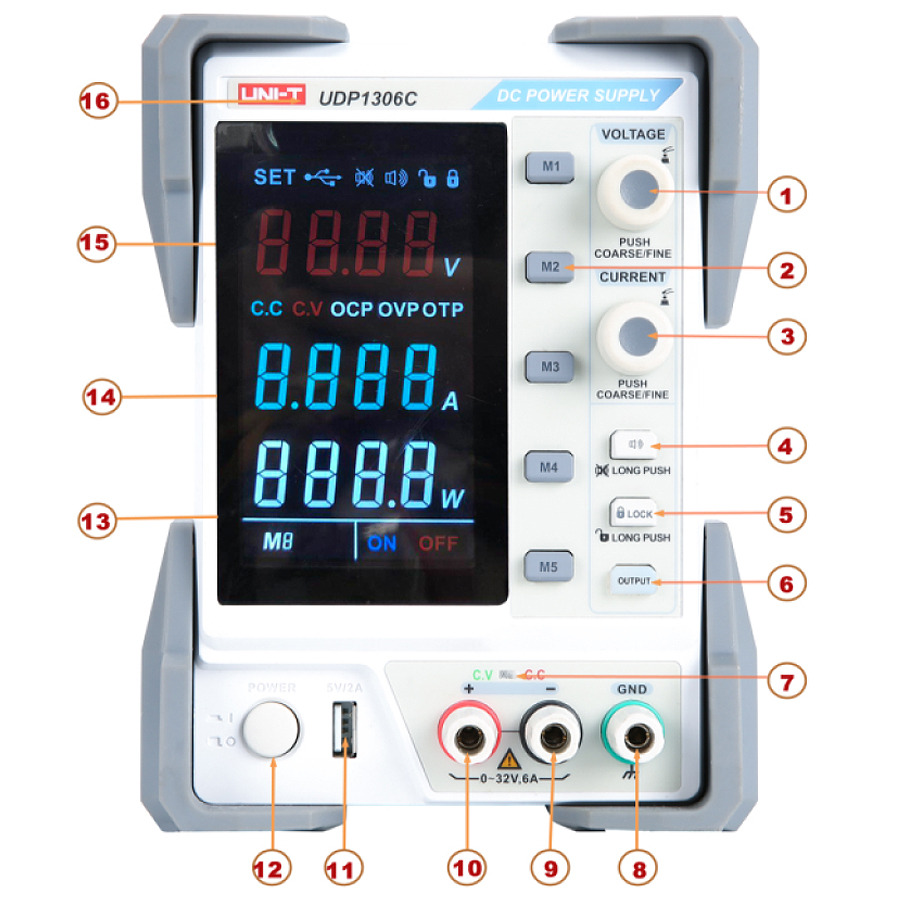 For ease of use during testing, the UDP1306C features M1-M5, five groups of stored values. A long press stores the values, while a short press recalls them, making it a convenient tool for test work.