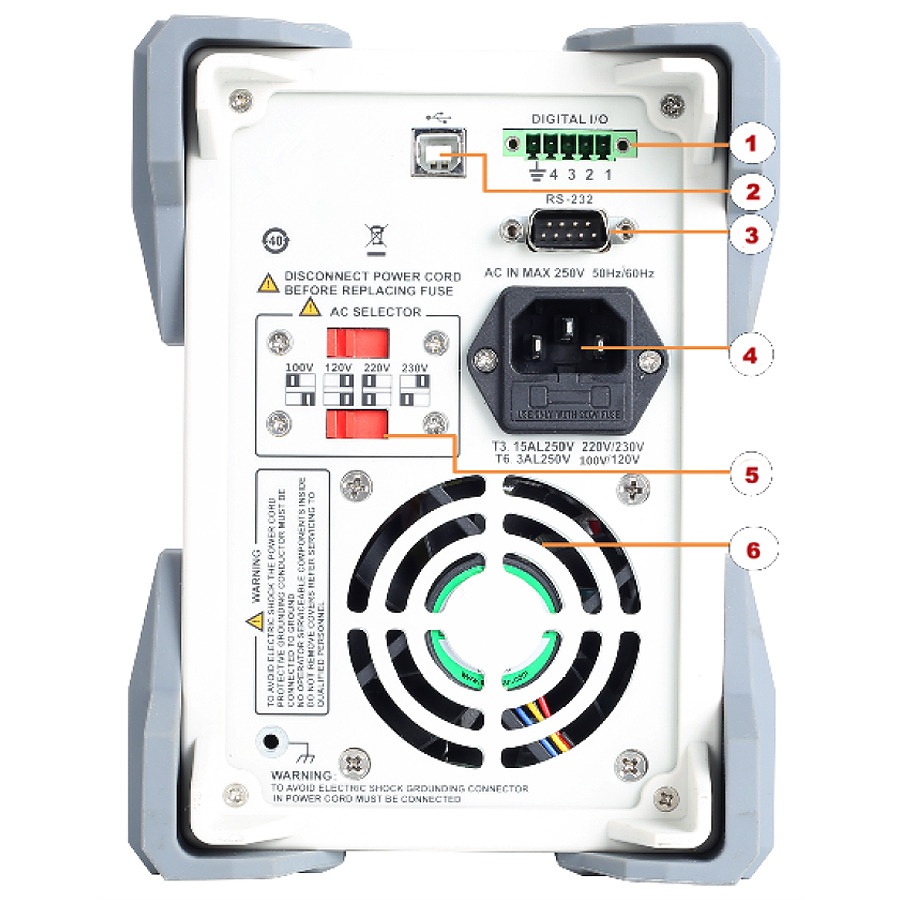 The power supply also comes equipped with a remote control digital I/O interface, allowing for remote control of the output and shutdown of the power supply channel. It also includes an RS-232 interface and a USB Device port. Based on the SCPI communication command, it can communicate with a computer, offering you seamless control and integration with your existing setup.